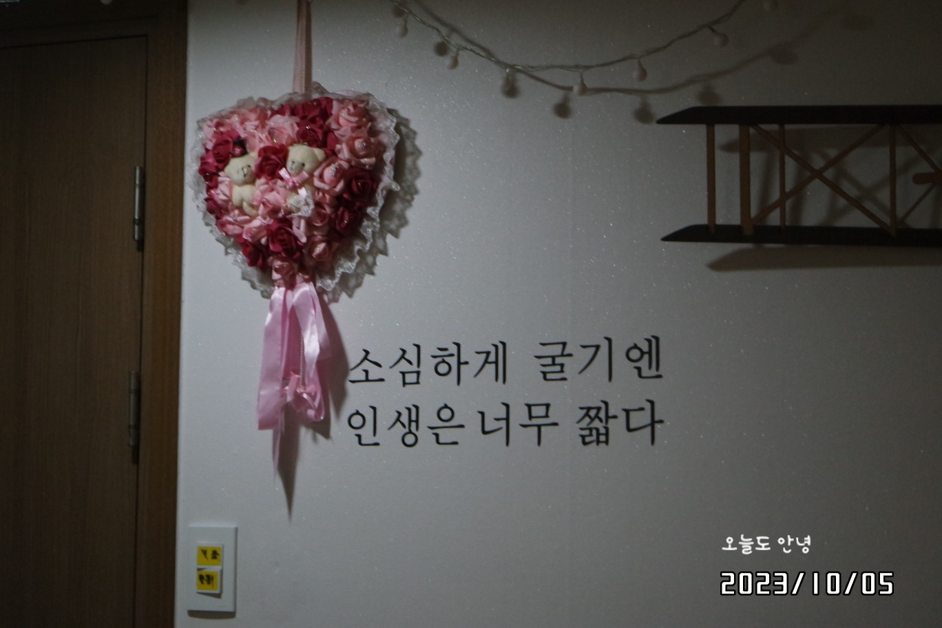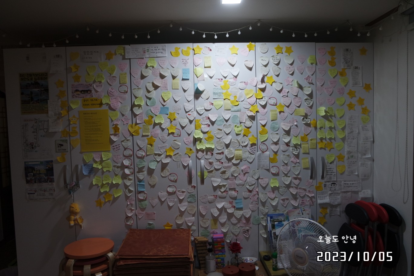 게스트하우스 현관에 들어서자마자 포스트잇으로 가득한 벽이 보입니다.