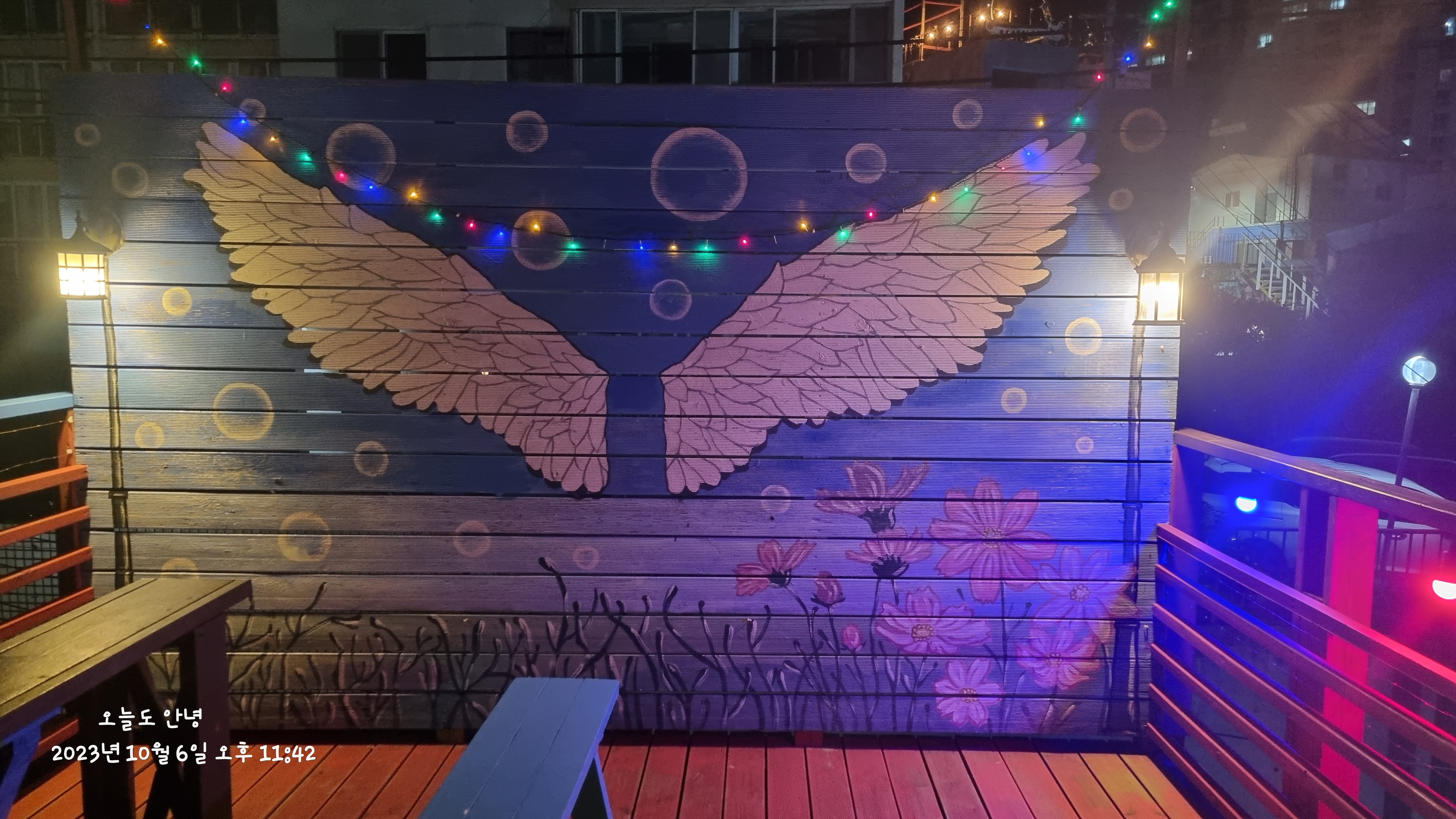 어머나~ 옥상에는 예쁜 천사날개 벽화가 그려져 있어요.